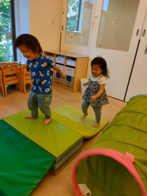 体もたくさん動かしましたトンネルやマットなど思いっきり体を動かして楽しんでいましたよ