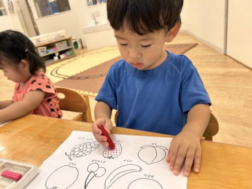 果物に合わせて上手に色塗りしていました