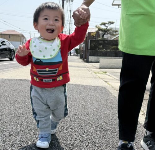 前にいる保育者と目が合うとニコニコで歩いてきてくれます![]()