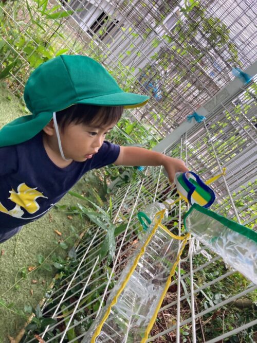 ペットボトルのスコップで水をすくって流すお友だち![]()