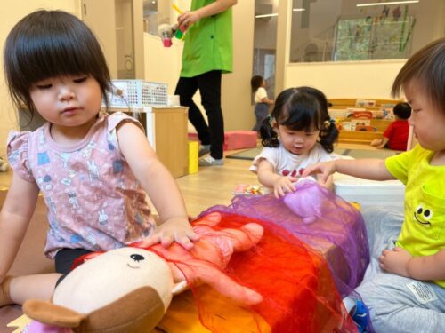 お部屋の中ではぬいぐるみを寝かしつけているお友だちがいました