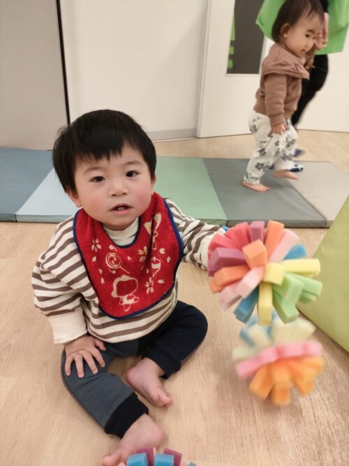 このボールは柔らかくてスポンジが方々へ伸びているので、子どもたちも掴みやすくて大人気でした‼️