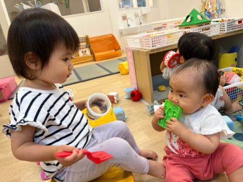 新しいお友だちを気にかけて近づいたり、玩具を「どうぞ」と渡してくれたりする優しいお友だちもいますよ