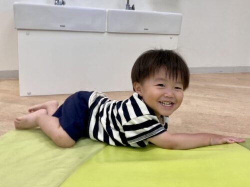 バランスを取りながら上手に歩いたり、ゴロゴロしながらフカフカなマットの感触を楽しんだり、室内でも体をたくさん動かし、元気いっぱいに遊びました![]()