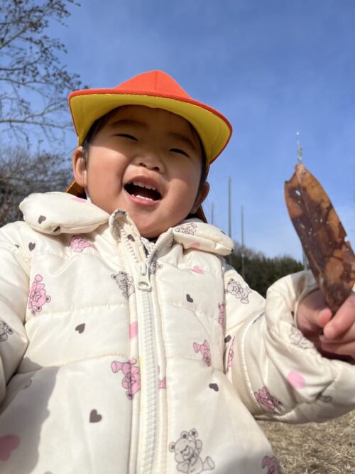 「はっぱ!」と大きな落ち葉を見つけて教えてくれました![]()
