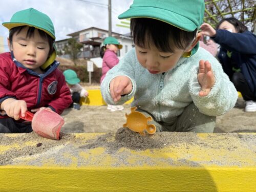 砂の感触を楽しみながら遊ぶお友だち![]()