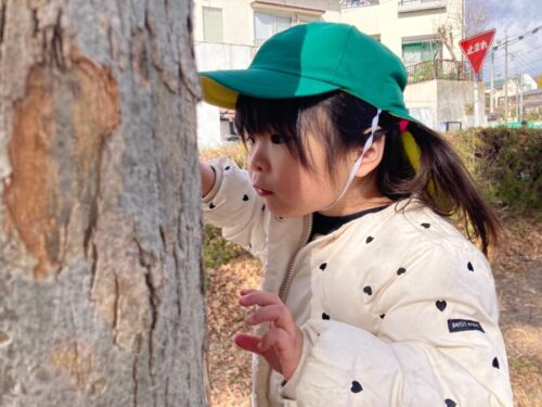 木の隙間が気になり、一生懸命見ているお友だちもいましたよ![]()