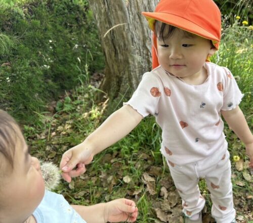 あひる組はたんぽぽを見つけて「ふー!」とお友だちと吹きあいっこをして遊んでいたり、「見つけたー!」と嬉しそうなお友だちもいました![]()