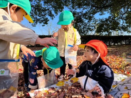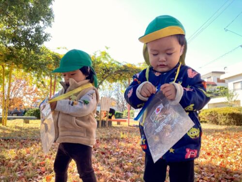 お友だちと一緒に落ち葉遊びも楽しみましたよ![]()