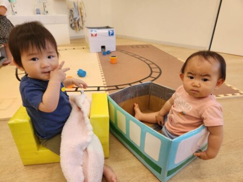 椅子や段ボールに入ってリラックスしているお友だち