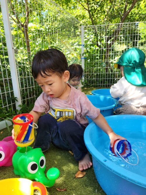 ジャバジャバと勢いよく水を触って気持ちよさそうなお友だち![]()