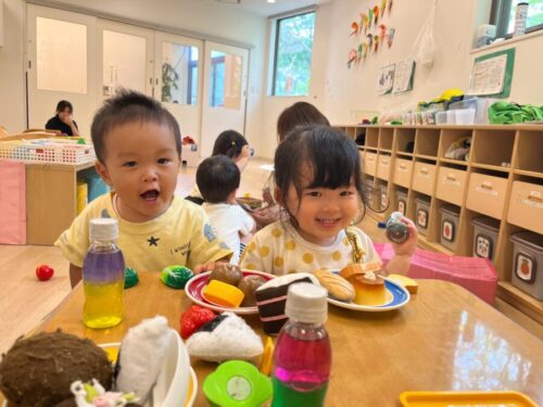 室内では、最近おままごとコーナーで毎日のようにホームパーティーが開催されています![]()