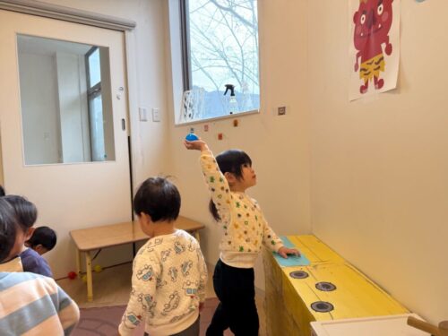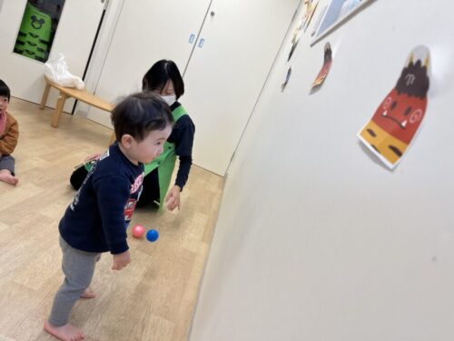 「ぽーん!」ひよこぐみのお友だちも鬼に向かって上手に投げることができました![]()