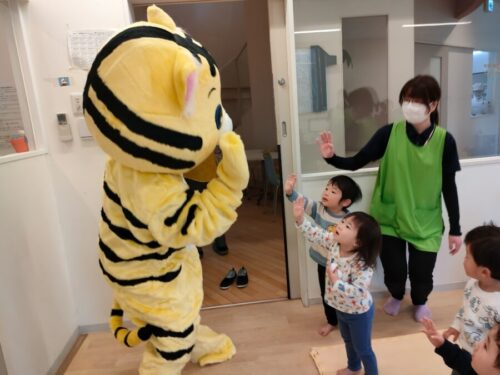 びっくりして泣けてしまうお友だちもいましたが、タッチしたり、バイバイと手を振ったりするお友だちもいましたよ![]()