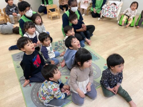 お歌を歌ったり、保育者の出し物を見たりと楽しんでいましたよ![]()