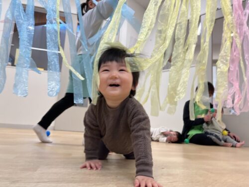 ひよこ組さんはスズランテープカーテンで遊びました![]()
