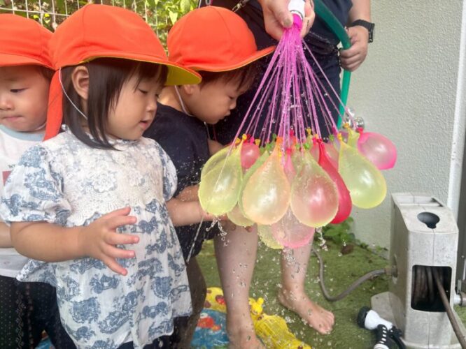今日は氷遊びや水風船遊びをしました。