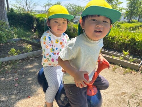 一緒に仲良く遊具にも乗ったよ🎵