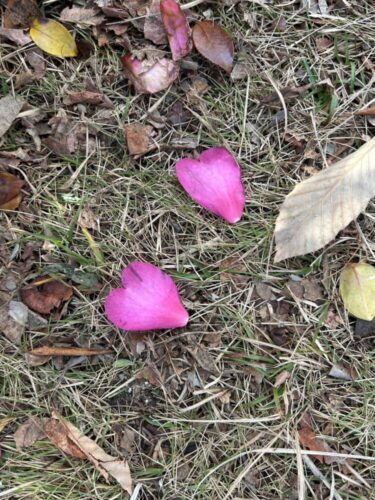 ハート🩷の形の花びらがたくさん落ちていました♡