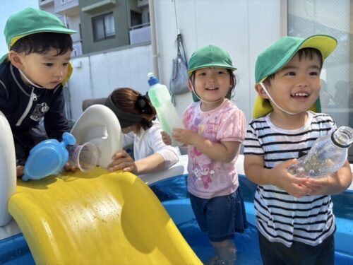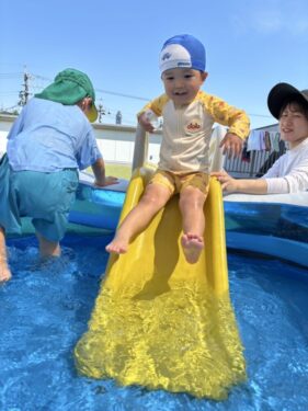 今日は久々にウォータースライダーで遊びました✨久しぶりのすべり台に大喜びのうさぎ組🐰何回も繰り返し滑っていました😊