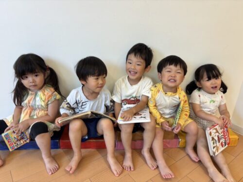 水着に着替えて準備万端💪仲良く絵本を読んでプールの時間を待ちます👀