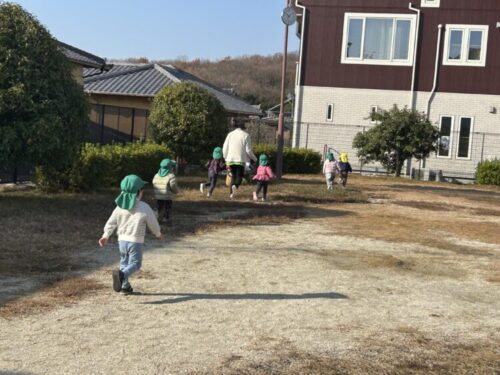 日向はポカポカで公園に着く頃には暑くて上着を脱ぐお友だちがたくさんいました☀️