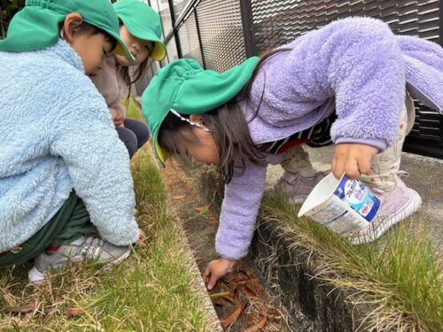 金木犀の花びらを拾ったり、ダンゴムシを捕まえたりしていました