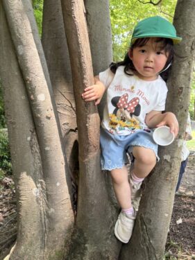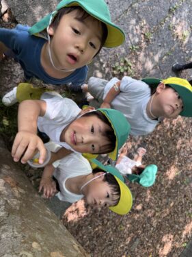 早速木登りをしているカタツムリを発見🐌「あそこにいたよ❗️」「どこどこ‼️」集まって一緒に見上げる姿がとても可愛いです☺️