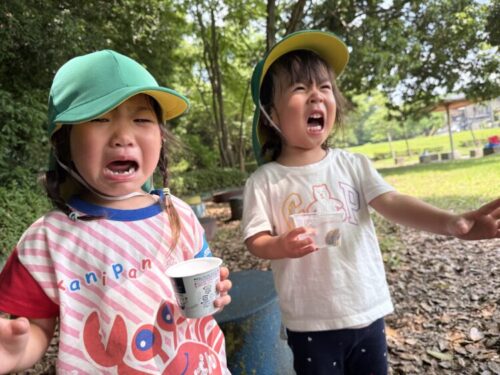 興味津々でカミキリムシの鑑賞会をしている横で大号泣の2人組☺️