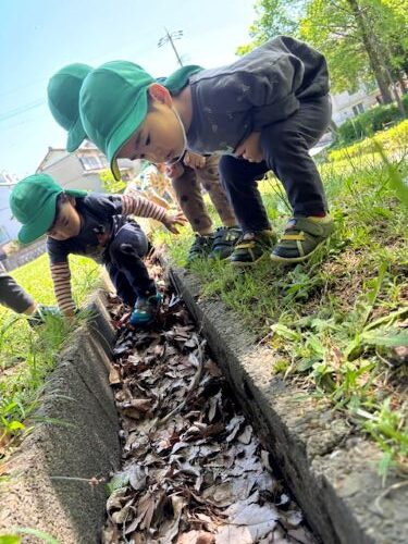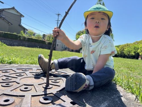 木の棒を穴にさしてみたり引きずってみたりして試しながら遊んでいる姿もありました![]()