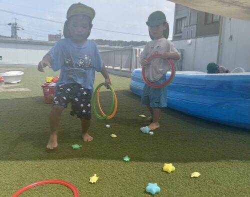 最後は輪投げをして遊びました⭕️「先生見てて‼️」と輪っかを投げると見事に成功👀一緒に投げていたお友だちと2人で大喜びでした😊