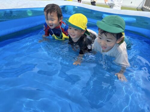 プールではさっそくワニに変身🐊「よーいドン❗️」の掛け声と共に、一斉に泳ぎ出します💨バタ足も上手に使いながら無事にゴールすることができました🙌
