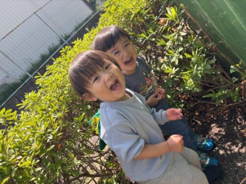 物置の後ろに隠れて「見つかった〜‼️」と嬉しそう💕