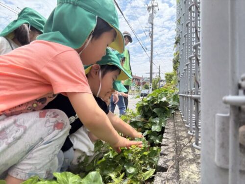 体操教室の後はグラウンドでカタツムリを探しに行きます🐌