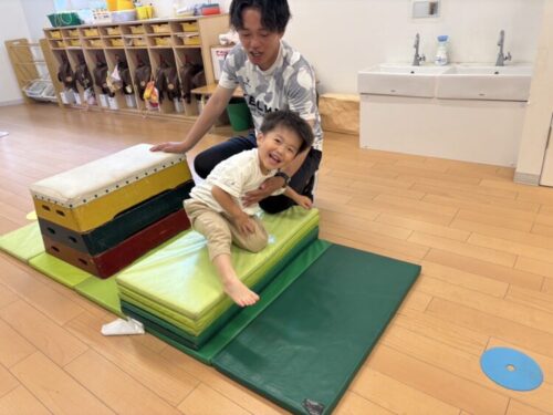 上手にマットに着地できてとても満足げな顔を見せてくれました😊