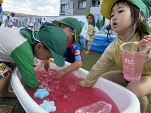 今日は色水遊びもしました🙌星のおもちゃを浮かべたり、「いちごジュース‼️」と言ってコップに入れてお店屋さんをしたり今日も楽しい1日でした🌈