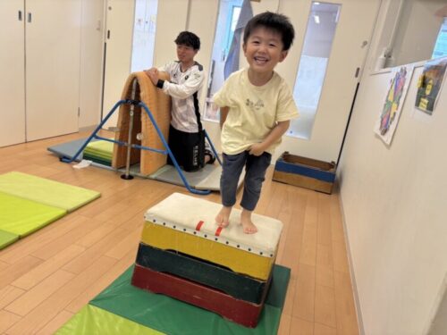 無事に登ったあとは跳び箱ジャンプ💨緑のマットへ元気にジャンプ‼️
