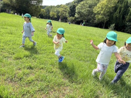 最後はみんなでかけっこ🏃♂️💨「よーいどん‼️」の合図で仲良くダッシュ💨広々とした公園を全力で楽しんだうさぎ組でした🌈