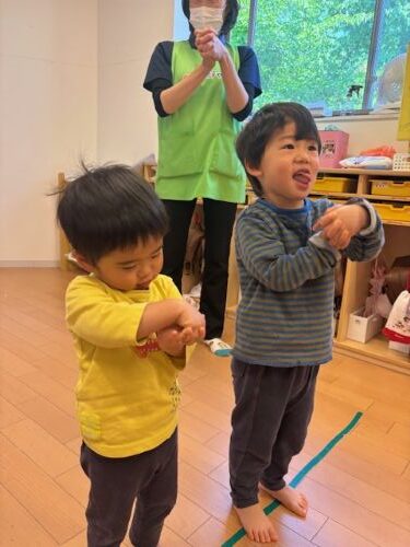 🐰体操教室🐰 🐰うさぎ組🐰 今日は体操教室でした 先生の真似っこをして準備体操 上手にできていました 順番を待つときは電車になってね🚃 広場では、今日も虫探しを楽しみました カテゴリ: 植田山(2~3歳児) タグ: