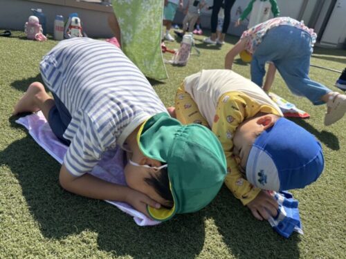 最後は恒例の日向ぼっこで屋上遊びは終了です🙆♂️仲良くくっついてごろーんするうさぎ組でした🥰