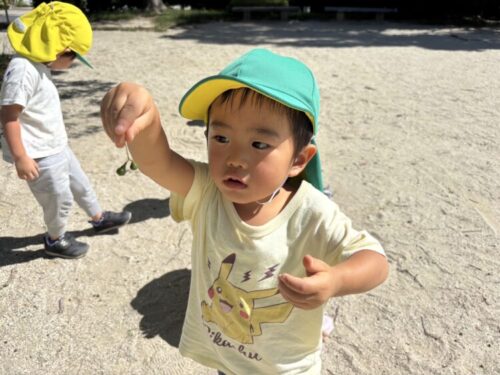 公園にいっぱい落ちていたのでみんなで拾って虫カゴへ入れていきます🙌一生懸命に探していました😊