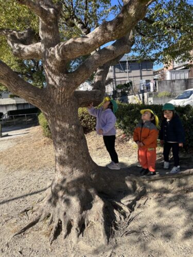 大きい木も見つけたね🌲「登りた〜い」と木を見上げる姿がありました😆