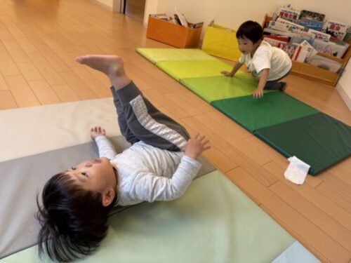 マット遊びではでんぐり返しに挑戦❗️