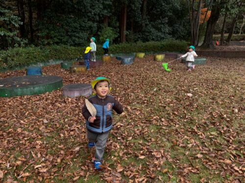 風が吹くとたくさんの落ち葉が落ちてきたので、みんなで落ち葉キャッチも楽しみました