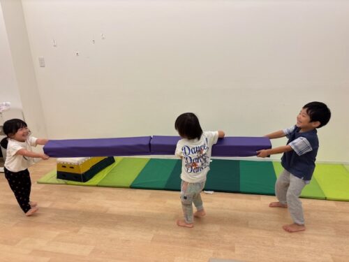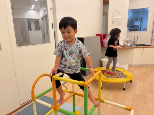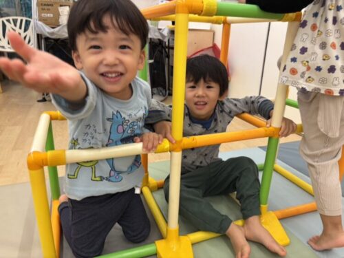 お部屋では、ジャングルジムや平均台ををして体を動かして遊びました![]()