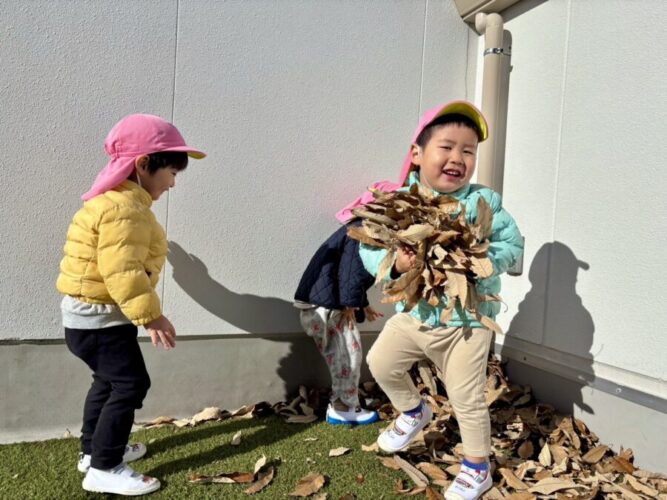 落ち葉がたくさん落ちていて落ち葉遊びもできたよ🍁