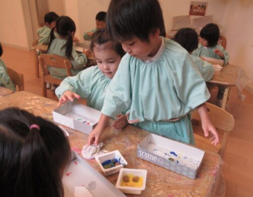 リトミックの後は絵の具製作🎨