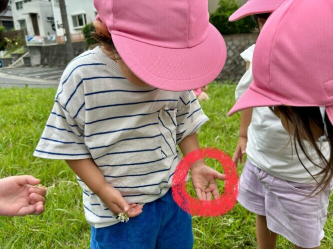 バッタを保育者と見つけて手の上に乗せれる子もいました👏👏