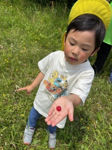 蛇苺を見つけました🍓「見て見て!」と見せに来てくれました✨