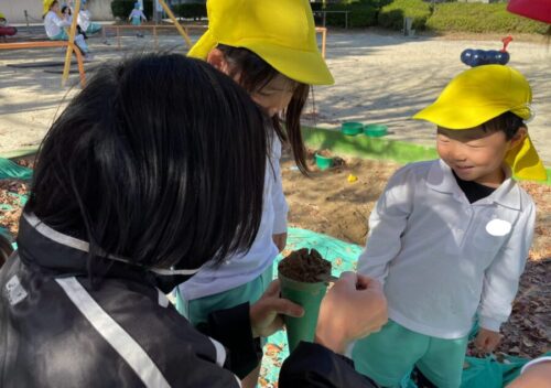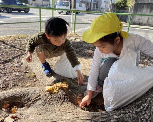 公園にはクリスマス製作用の落ち葉や木のみを探しに行きました🍂